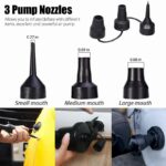 DC 12V Electric Pump comes with 3 interconnecting nozzles to easily inflate or deflate various inflatables, including airbeds, pool rafts, swim tubes, etc.